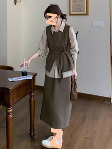 衬衫+马甲+腰带+半身裙(套装)