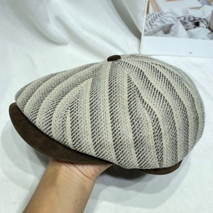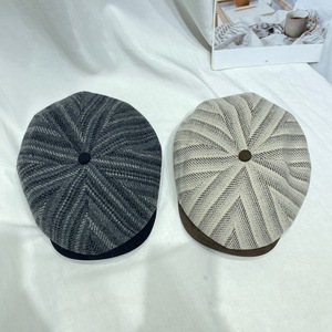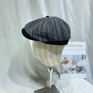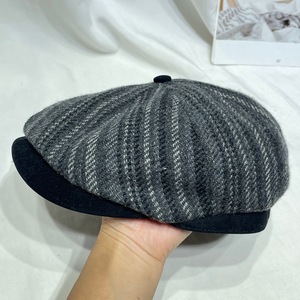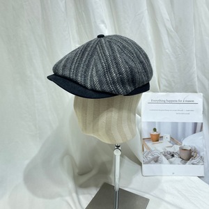日系复古条纹羊毛呢前进帽子女秋冬英伦风画家报童帽反戴鸭嘴帽潮