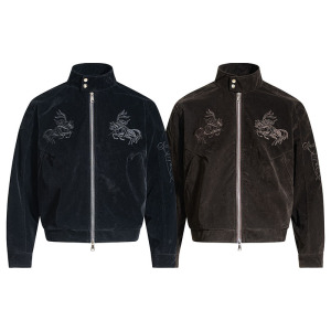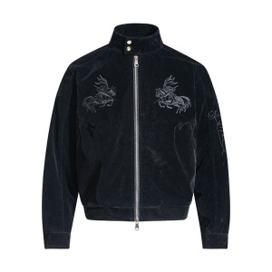 TKPA美式复古半高领机车夹克男女秋冬高街刺绣宽松PU仿皮拉链外套
