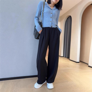 WTHEONE修饰腿型立体褶裥天丝羊毛阔腿西装裤高腰显瘦休闲裤2025