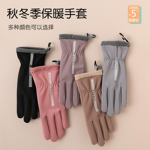 秋冬季新款保暖手套加绒男户外骑行防风防寒骑车可触屏松紧腕口