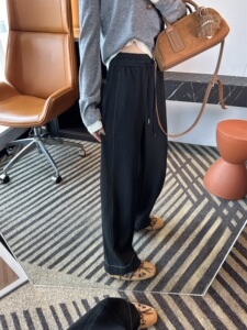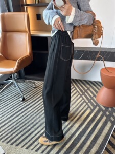 腿型救星!~松紧腰垂感阔腿牛仔裤女秋季新款小个子宽松直筒裤子
