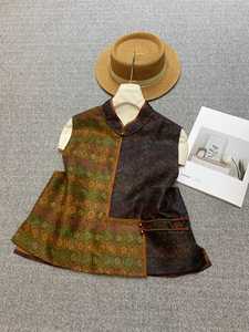 古香古色新中式拼色真丝香云纱马甲2025秋装复古手工盘扣叠穿上衣