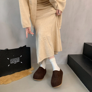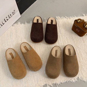 厚底勃肯鞋加绒包头半拖鞋女外穿2025新款秋冬季一脚蹬博肯棉拖鞋