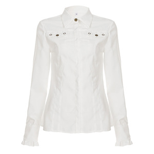 日系中性风金属扣装饰翻领衬衫正肩显腰线木耳边袖口设计长袖上衣