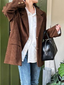 灯芯绒西装外套女棕色2025春秋新款时尚感百搭宽松休闲小西服上衣