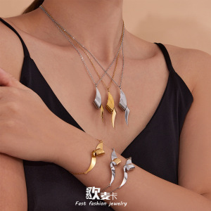欧麦卡ins小众设计新款不锈钢扭打结吊坠耳环项链手链套装饰品女