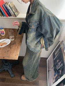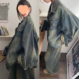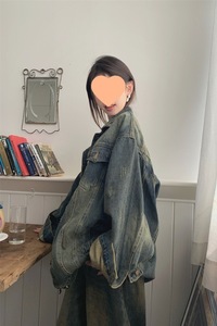 复古水洗牛仔外套女秋季2025新款设计感BF风polo领宽松长袖上衣潮