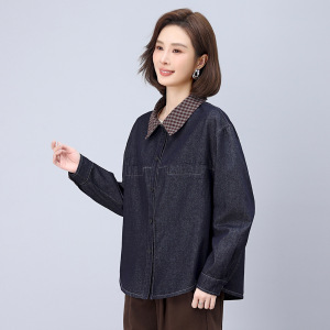 翻领牛仔外套女春秋2025年新款中年妈妈宽松洋气休闲减龄薄款上衣