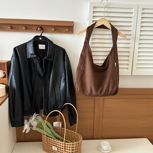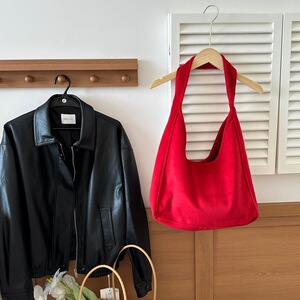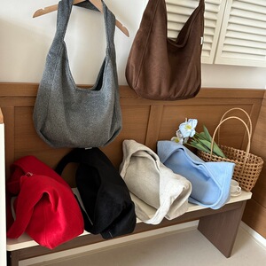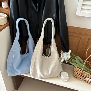 韩国博主同款慵懒风托特包女2025新款秋冬季毛呢大容量通勤单肩包