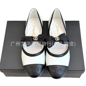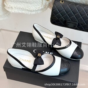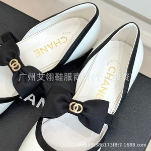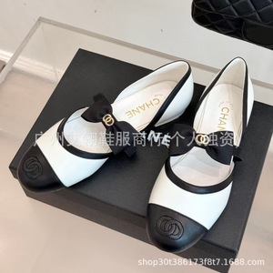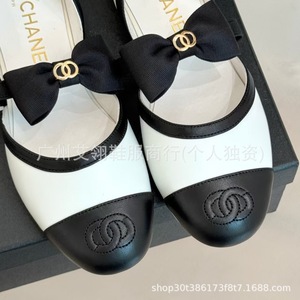 增高4CM蝴蝶结拼色中空单鞋女2025夏季新款小香风圆头一字带凉鞋