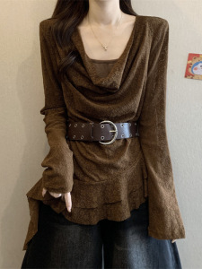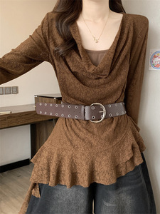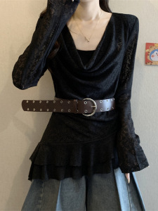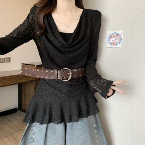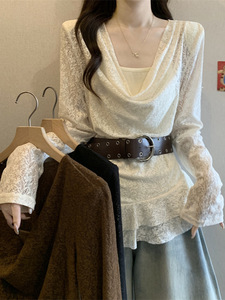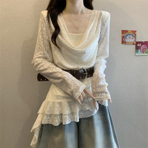 2025秋季新款女装韩系穿搭荷边叶荡领蕾丝叠穿T恤长袖上衣女A7176