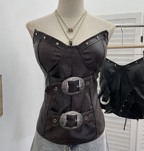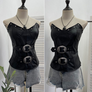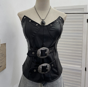 实拍 朋克辣妹重工显瘦修身裹胸短款pu皮抹胸带胸垫无袖上衣 2783