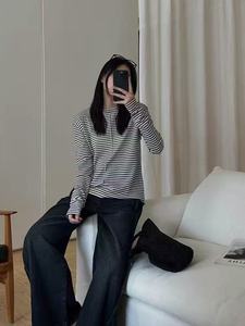 2025秋季新款慵懒风舒适亲肤圆领条纹中缝线休闲长袖T恤