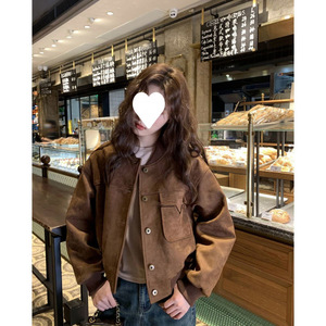 高级感美式禅意风其它绒棒球领服外套女春秋新款小个子短款机车服