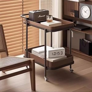 轻奢马鞍皮沙发边几角几小推车置物架移动带轮沙发边柜客厅小茶几