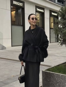 跨境欧美女装速卖通INS爆款秋冬时髦高级感毛呢外套