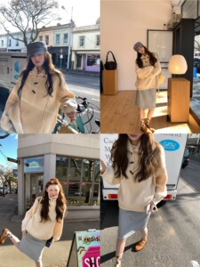 aaaaxbbb 济州橙酒 麻花针织毛衣套头纽扣高领2way休闲韩系上衣女