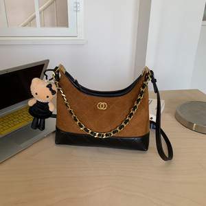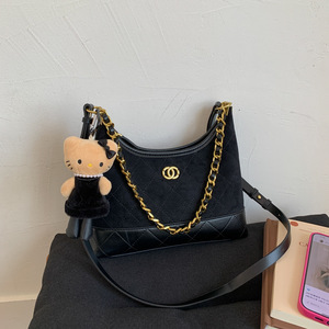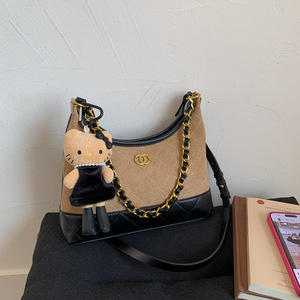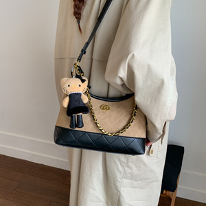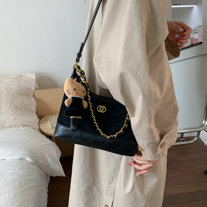 高级感菱格链条腋下包包女2025新款磨砂拼接单肩斜挎包百搭流浪包