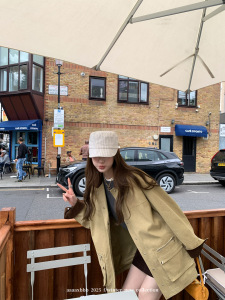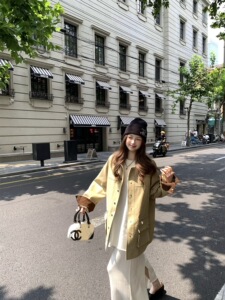 aaaaxbbb 西海秋意 撞色灯芯绒夹克外套拼接口袋上衣女中长款秋季