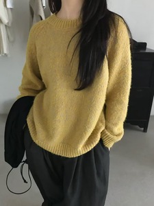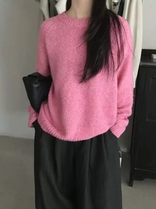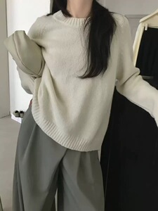 韩系慵懒风针织衫女秋冬新款宽松显瘦套头毛衣气质上衣跨境批发