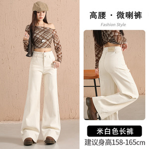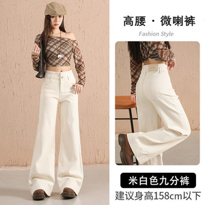 丹宁蓝阔腿牛仔裤女2025秋冬新款高腰显瘦宽松窄版加绒直筒长裤子