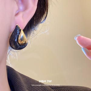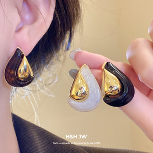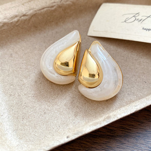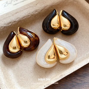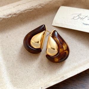 18K真金电镀银针树脂水滴耳环小众设计感耳钉轻奢高级感耳饰批发
