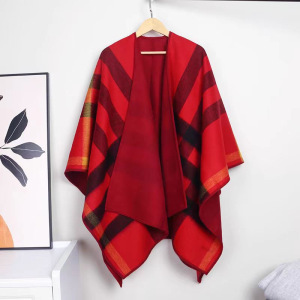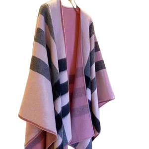 内蒙古经典羊毛羊绒冬季英伦格子双面厚款高级斗篷