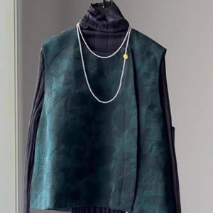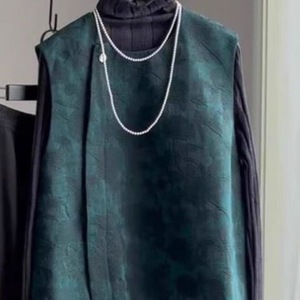 新中式国风复古气质高端精致别致绝美孔雀蓝宽松圆领马甲女秋冬款