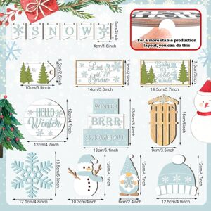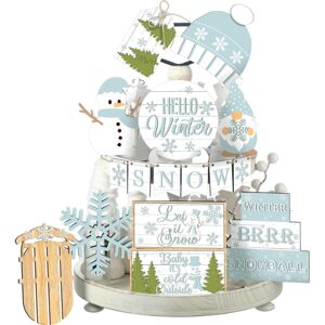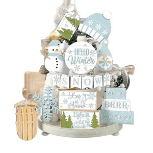 16件套冬季分层托盘雪人和雪花木制标志农舍冬季分层托盘装饰套装