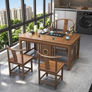米澳拉新中式茶桌椅组合实木小茶桌茶台小户型办公室阳台茶桌一体