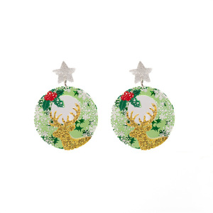 跨境新款圣诞耳环 创意卡通小众设计圣诞树雪花铃铛亚克力耳环女