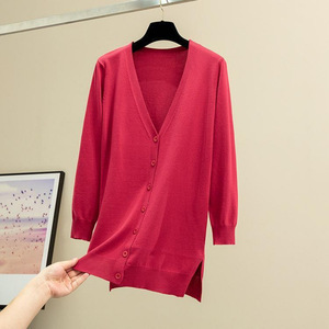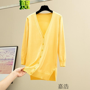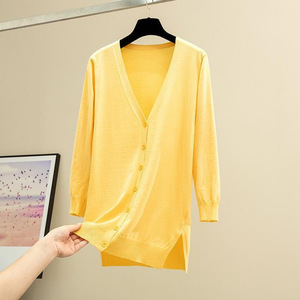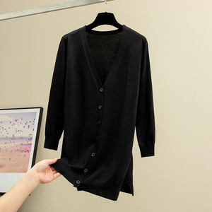 其它/其它针织开衫女中长款外披秋薄搭配连衣裙的开叉上衣外搭防