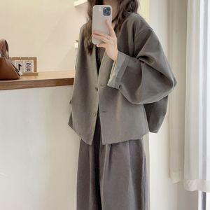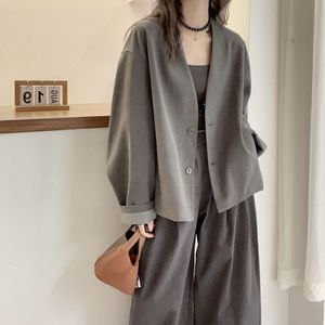 2025早秋新款英伦风V领通勤外套女宽松灰色雪尼尔氨纶其他常规