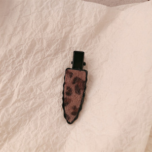 高级感复古豹纹发夹女新款不规则毛绒鸭嘴夹刘海侧边夹发卡头饰