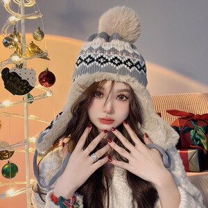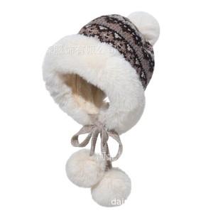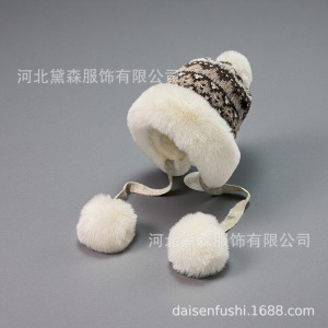 冬季新款加厚三球毛绒帽子女民族风显脸小护耳保暖帽厂家直销批发
