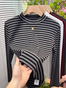 2025秋冬新款韩版百搭长袖修身显瘦酱紫色T恤女立领打底衫上衣潮