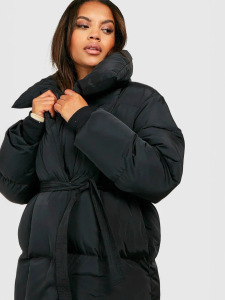 2025欧美女装独立站保暖收腰 长袖系腰 宽松纯色时尚秋冬棉服棉衣