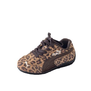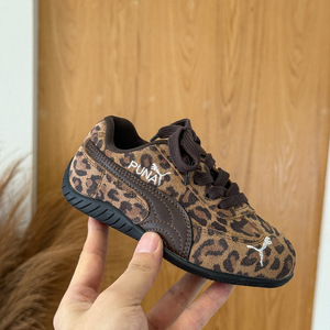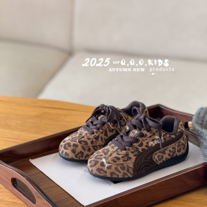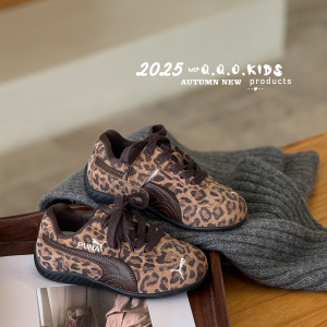 QQO童鞋 2025年秋冬新款儿童豹纹运动鞋潮流男女童软底真皮德训鞋