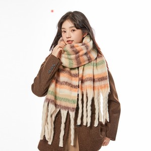 彩虹围巾女冬季高级感加厚马海毛彩色条纹2025新款百搭复古围脖