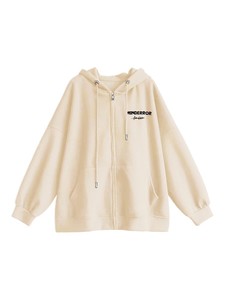 %棉美式复古拉链开衫卫衣女秋冬季加绒加厚连帽外套