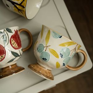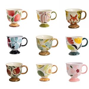 马克杯定制LOGO定做订制出口纯手绘中古风陶瓷杯子釉下彩伴手礼品