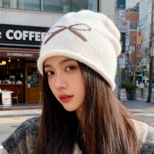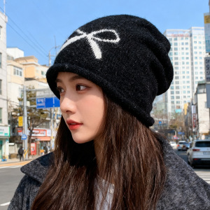 秋冬日系复古帽子女蝴蝶结包头帽大头围显脸小堆堆帽针织保暖冷帽