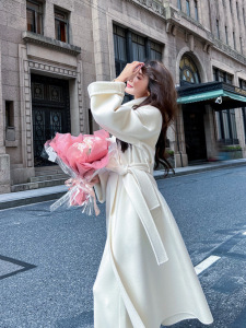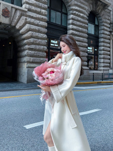 韩国订单水貂毛立领双面羊绒大衣女中长款2025秋冬新款羊毛呢外套