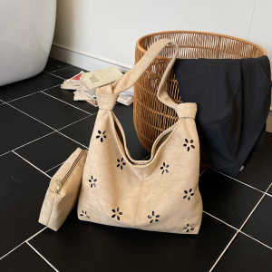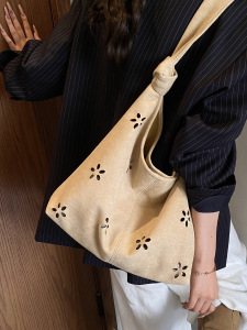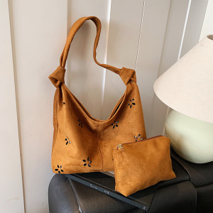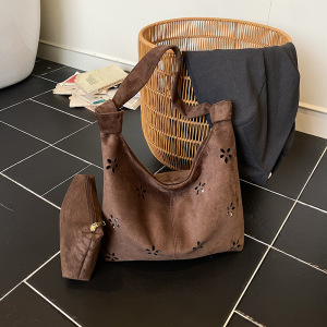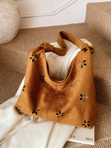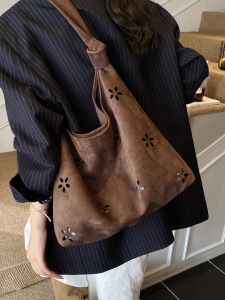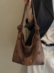 休闲复古麂皮绒包包2025新款通勤百搭女士单肩包松弛感托特水桶包