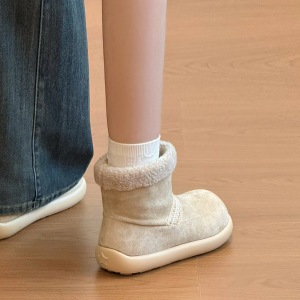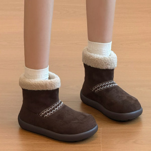 速鼎丑萌短筒雪地靴女2025冬季新款加绒加厚棉靴保暖平底勃肯棉鞋