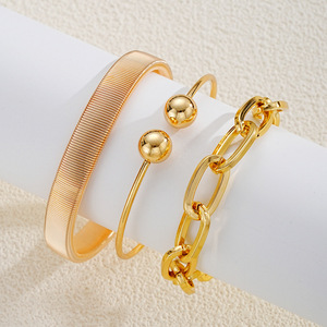 跨境热销螺纹链条手镯套装三件套时尚百搭高级感创意潮流设计手饰