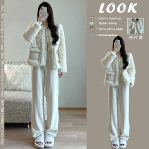 ◎▽阔腿裤+羊羔毛外套【两件套】◎▽