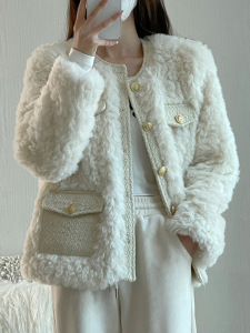茶系搭配一整套女秋冬季盐系穿搭轻熟气质羊羔绒外套韩剧两件套装