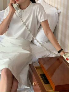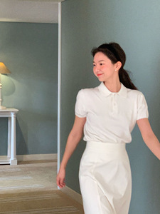 现 thebarnnet白色短袖针织衫八奶纯棉翻领polo衫韩系学院风减龄